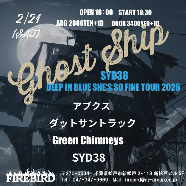 SYD38がニューアルバムを引っさげてのレコ発ツアーをなんと新松戸FIREBIRDでもやってくれます🥳 もちろん最高最強最好のバンドで固めてあります💪来年の2/21(土)📝! #新松戸firebird pic.x.com/9VoIxsumZ8