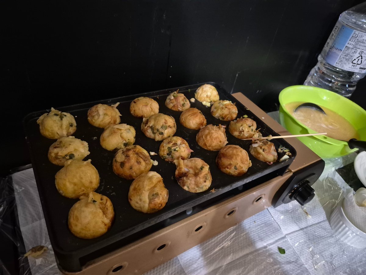 ライブハウス新松戸FIREBIRDのスナック営業日 いろんな具材が入ったタコ焼きを作ると聞いて残業上がりに駆け込み ガス焼きのタコ焼き🐙 初対面のビール屋さんと甘くて辛くて美味しいオリジナルカクテルのスパイシーブーストでカンパイ🍻 閉店まで楽しい時間をすごす😊 #新松戸FIREBIRD #幻スナック松淳 pic.x.com/pJlbEoHJ3f x.com/oniku029029029…