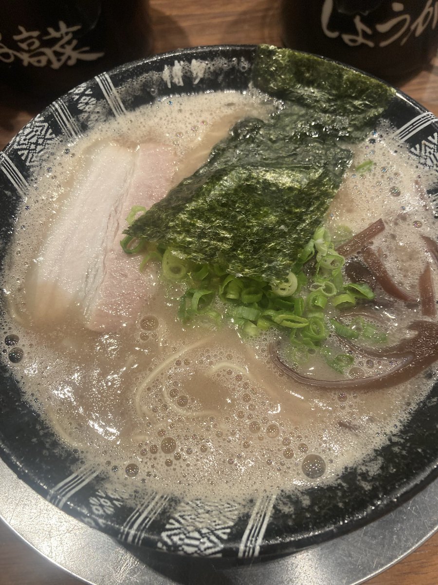 #新横浜ラーメン博物館 【一杯目】 #博多一双 チャーシュー麺 #博多とんこつ の中では濃いめ チャーシューも柔らかめで美味しい 1枚目は提供直後 2枚目はトッピングした後 pic.x.com/7rSTfNwghj