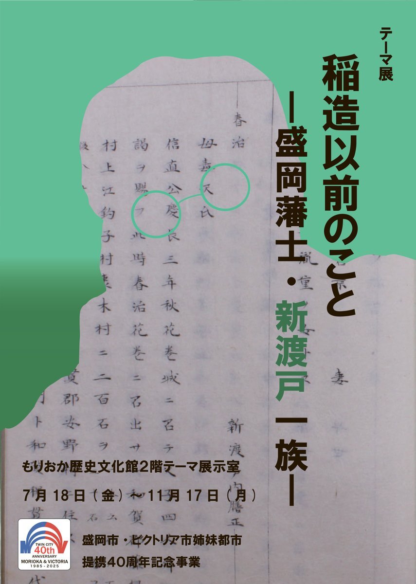 盛岡市・ビクトリア市姉妹都市提携40周年記念事業 テーマ展「稲造以前のこと -盛岡藩士・新渡戸一族-」(開催中~11/17) 『武士道』のルーツともいえる、新渡戸稲造のなかにあった武士の姿、すなわち盛岡藩に仕える武士として活動していた、新渡戸家の歴代は→続 #新渡戸稲造 pic.x.com/ijObeLT7bZ