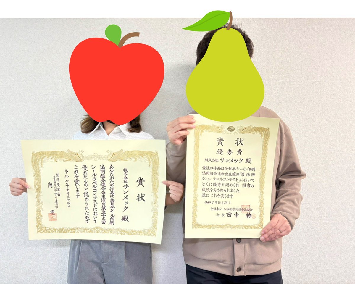 おはようございます! #新潟市西区 は☁、#台東区 も☁ 先週開催のラベルコンテストの結果発表ぉ〜…の前に、大会は各社で同じデザインを印刷する“規定課題”とデザイン加工を自社で作る“自由課題”の2部門あり…で結果は、あっ文字数が🍐 #企業公式が毎朝地元の天気を言い合う #企業公式相互フォロー