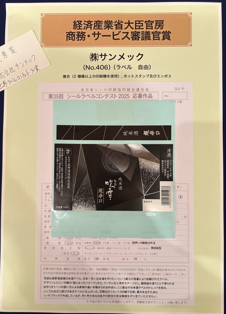 おはようございます! #新潟市西区 は☀、#台東区 も☁ #ラベルコンテスト の続報ぉ〜…映えある賞を頂いた2作品✨️ 自由課題は左のシックなラベル、規定課題は右の大阪の街がデザインです! こだわりポイントは…“あっ文字数が🍐 #企業公式が毎朝地元の天気を言い合う #企業公式相互フォロー x.com/mecsns50/statu…