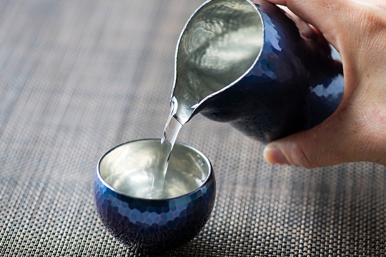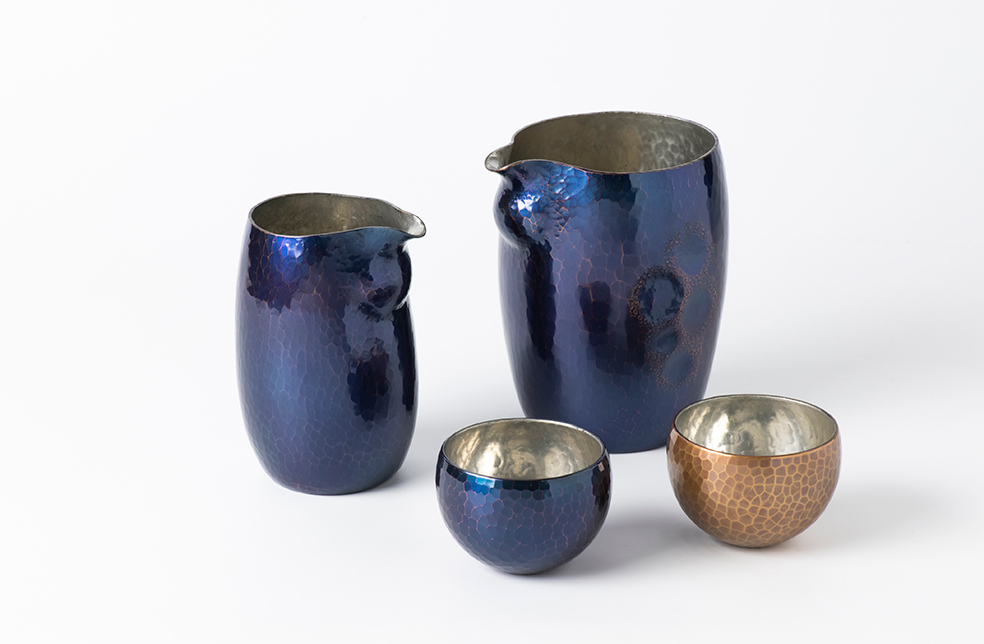 【鎚起銅器 ぐい呑み・徳利(青藍・金茶)/鎚起工房 清雅堂】どれも一点モノ!職人の手仕事が、しっくりと手に馴染む曲線美を生みます。熱伝導率が高く、ひんやりした口当たりは冷酒にピッタリ◎上質な晩酌の時間を✨ #新潟直送計画 #米しかないと思うなよ #酒器 #鎚起銅器 #鎚起工房清雅堂 #弥彦村 pic.x.com/YTtqghqwSs