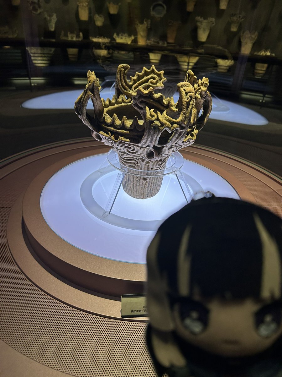 らでんちゃん、火焔土器だよ…ドキドキだね。土器だけに。 #新潟県立歴史博物館 #見て見てらでんちゃん pic.x.com/vbXRplkBKz