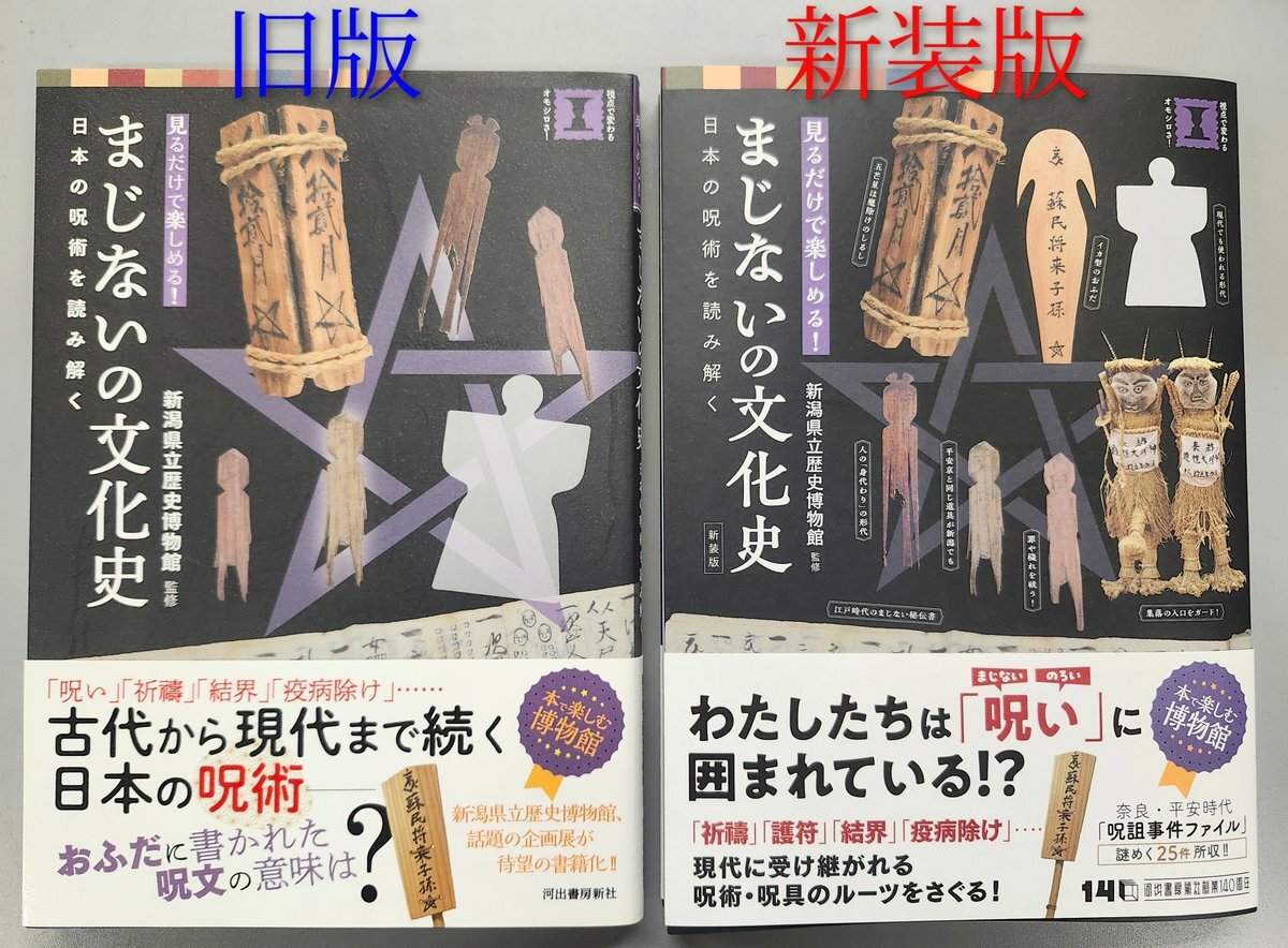 【まじないの文化史】新装版発売 本日、当館監修の「まじないの文化史」の新装版が発売されました!! kawade.co.jp/np/isbn/978430… まちがい探しのように、旧版との違いを探してみよう! 旧版の増刷はもうなさそうなので、旧版もある意味貴重かも♡ #新潟県立歴史博物館 #まじない #呪術 pic.x.com/iGQeNJG3B5