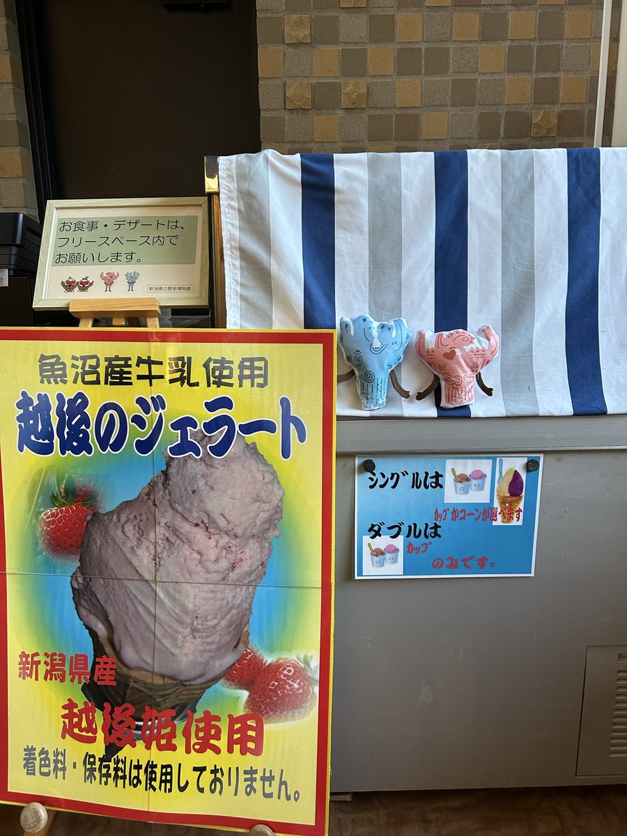 【レストラン彗星】 この土日はね、レストランが営業するんだよ! 〈かえん〉ジェラート楽しみ〜 〈おうかん〉ジェラート食べたい、、、 #新潟県立歴史博物館 #レストラン彗星 #ジェラート pic.x.com/x3unHNag9O