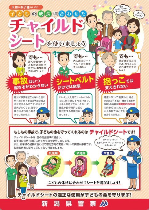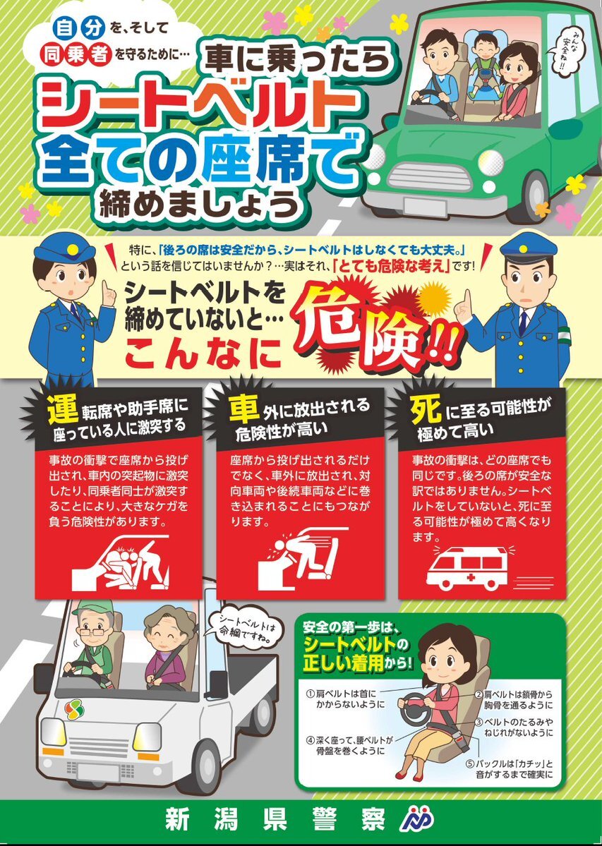 / 必ず締めて! シートベルト・チャイルドシート \ 万が一交通事故に遭った場合に備えて 車に乗ったら必ず 「カチッ」 とベルトを締めましょう!! #新潟県警 #交通事故防止 pic.x.com/yxgBKq1BUF