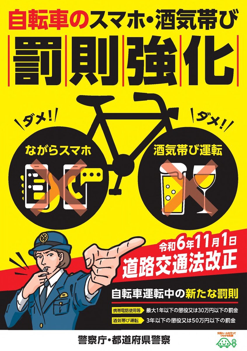 #道路交通法 改正から1年経過】 道路交通法の改正により、自転車に対する罰則が強化されてから1年が経過しました。 #ながらスマホ#飲酒運転 はしていませんよね? 交通ルールを守らないと重大事故になります。 改めて考えてみてください。 #新潟県警 #交通事故防止 pic.x.com/5Ot81rspCf