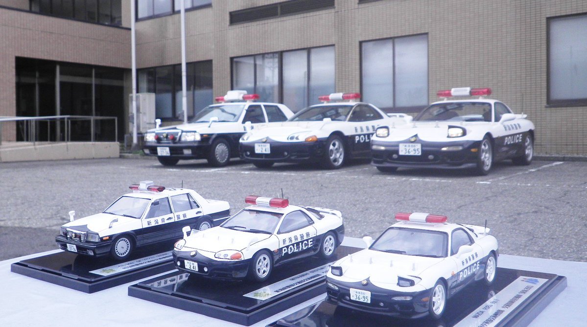 / 11月1日は「#スーパーカー の日」 スピードの出しすぎは厳禁⚠ \ スーパーカーも交通ルールを守った安全運転を!! スーパーカーは最高にかっこいい!! ※左から、セドリック、GTO、RX-7の各パトカー ※各模型は、県警に寄附いただいたものです。 #新潟県警 #交通事故防止 #交通機動隊 pic.x.com/Qg4jKwy3Oc