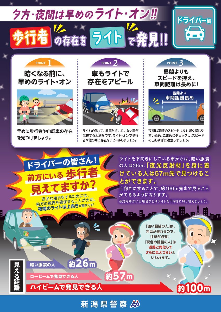 非常事態!! 【⚠交通死亡事故シャットアウト緊急対策実施中⚠】 10月17日から21日までに5件の交通死亡事故が連続発生し、緊急対策を実施しています。 ドライバーの皆さん ・夕暮れ時間帯は早めのライト点灯 ・ハイビームを基本に、こまめに切替え #新潟県警 #交通死亡事故 多発 pic.x.com/930AfdBbdn