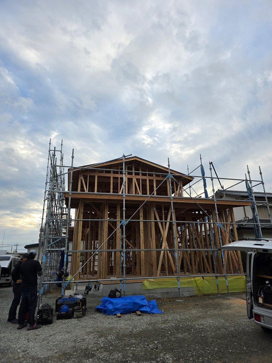 本日上棟の日。 ここまで支えてくださった職人さんたちに心から感謝です。 これから完成に向かって、ひとつひとつ大切に。 今日もよろしくお願いします🙇‍♀️ #上棟 #上棟式 #建前 #家づくり #注文住宅 #新築 #新築一戸建て #木造住宅 #棟上げ #工務店 #建築現場 #現場風景 pic.x.com/GXgQrJ6N6R