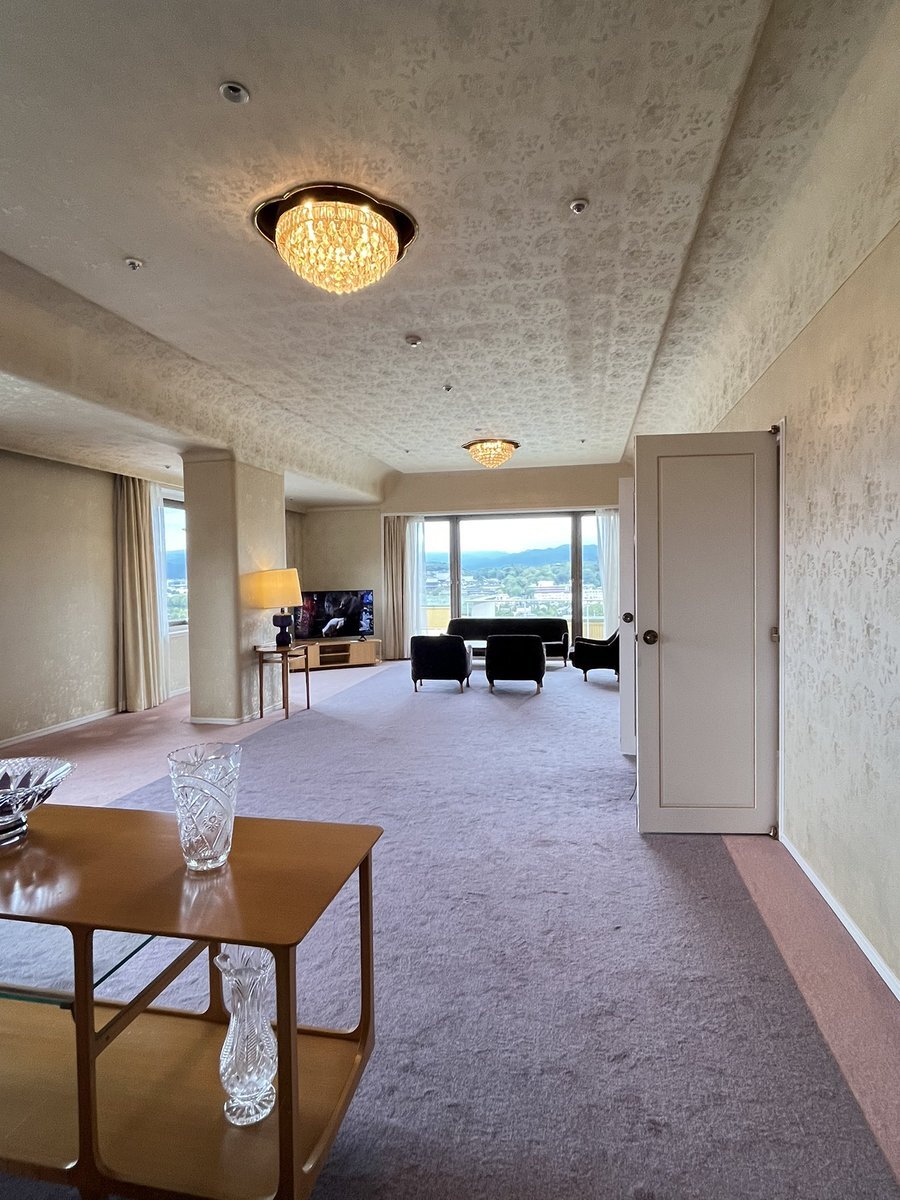 ウェスティン都ホテル京都の見学ツアーに参加。村野スイートにも入室しました。 俊介が発見され喜久雄と再会するシーンが撮影されたお部屋。照明や一部の家具は建設当時のものから変わっているそうですが、村野デザインの特徴であるアールの曲線が美しい✨ #国宝 #吉沢亮 #横浜流星 #ロケ地巡り