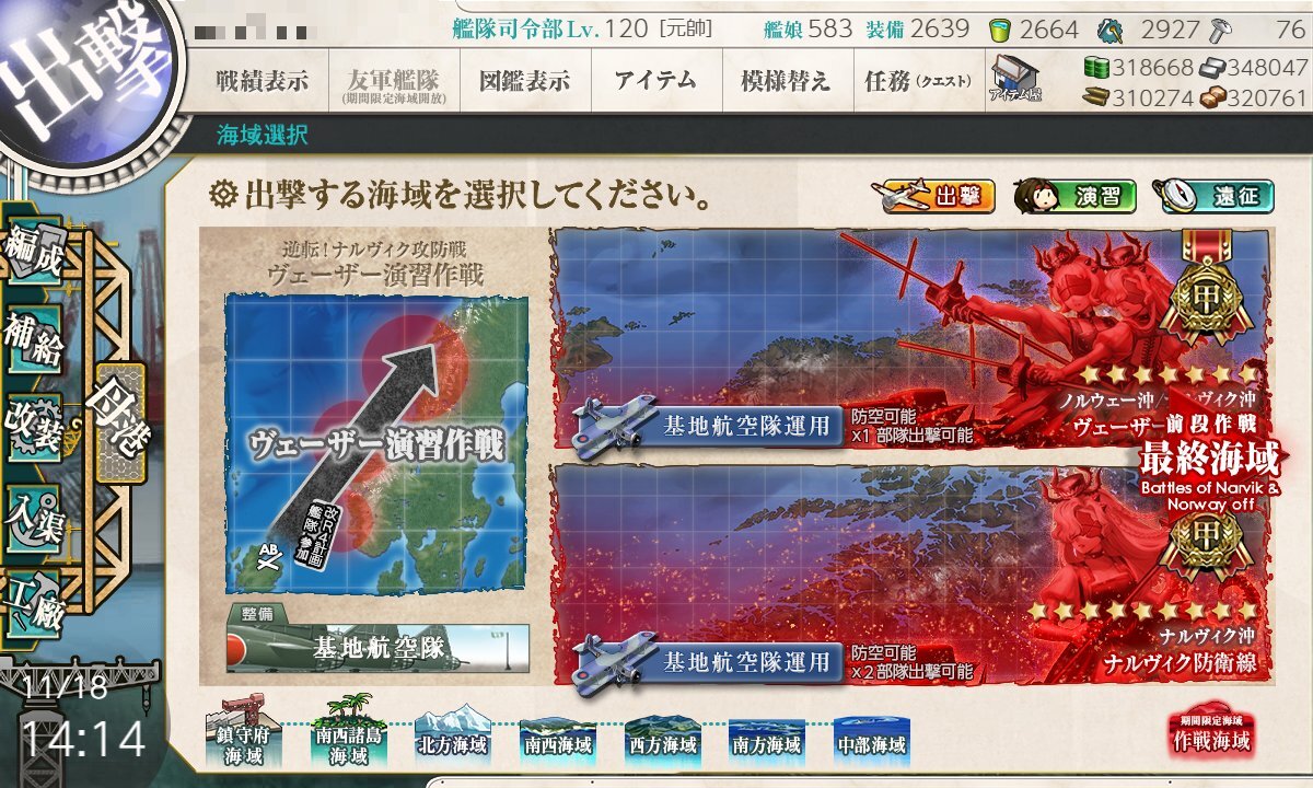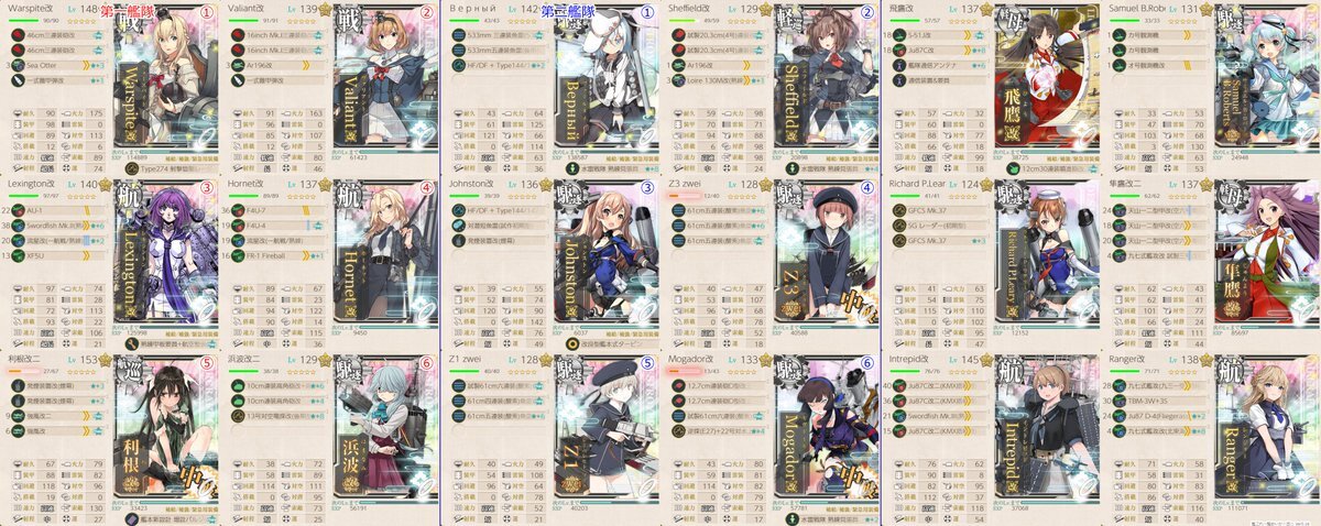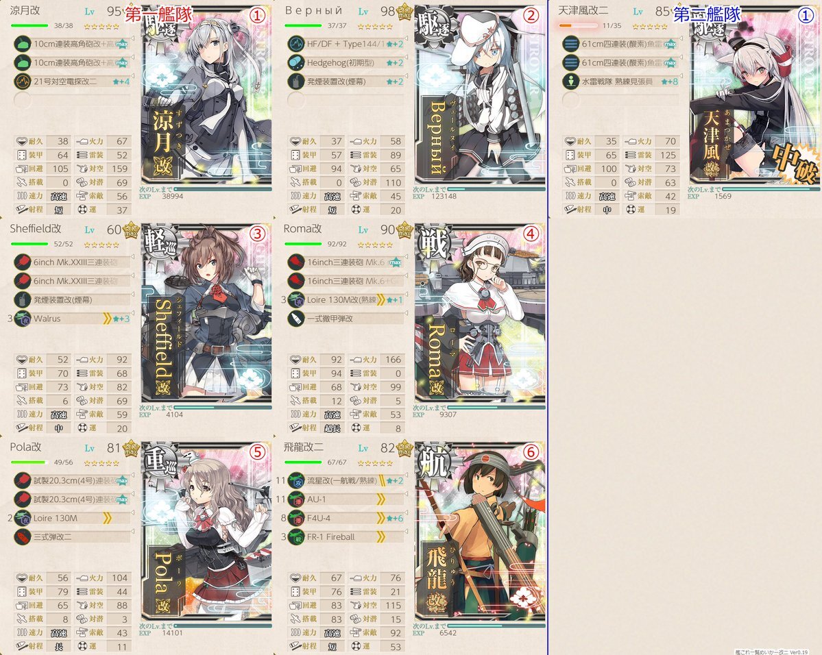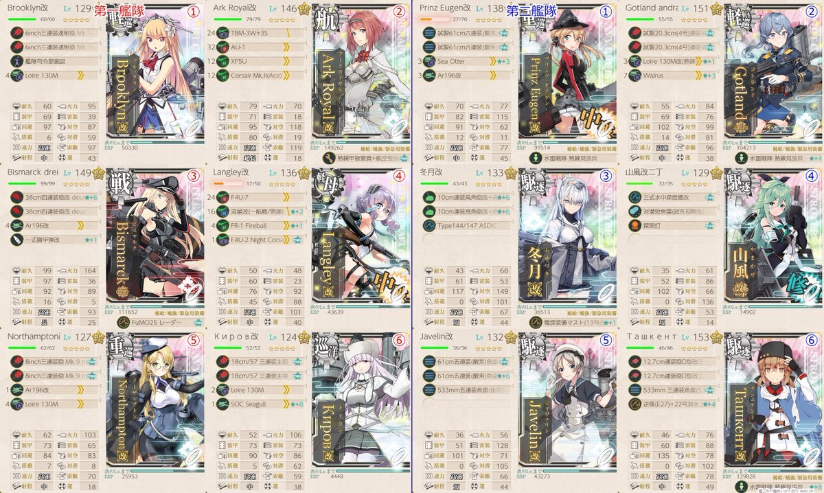 #E3甲 壊後出撃12、S0、A2 装甲破砕無 支援:道中有(対潜)、決戦無 基地:ボス2 ほぼぜかましさん編成 @zekamashinet #艦これ #秋イベ #前段作戦 #新艦娘 #Glorious #ノルウェー沖海戦 pic.x.com/BY7o60CGl1