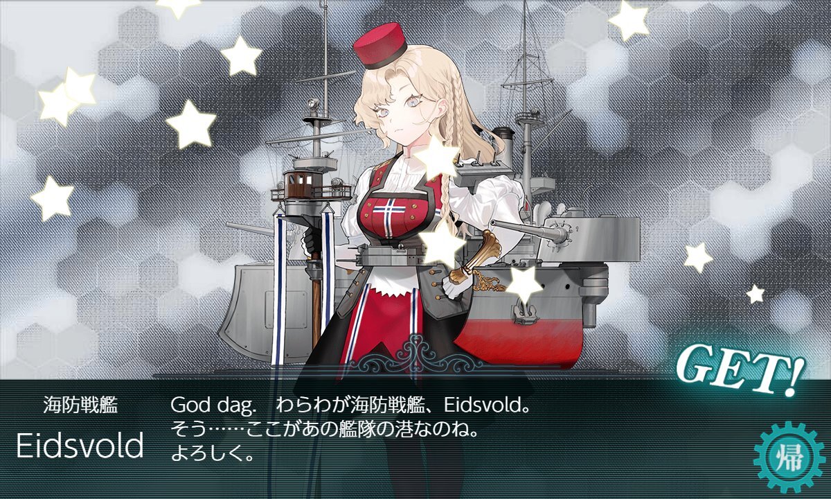 #Eidsvoid E2甲 YマスS勝利 出撃53、S26、A20 支援:無 基地:ボス2 ほぼぜかましさん編成 @zekamashinet #艦これ #秋イベ #前段作戦 #新艦娘 #Eidsvold pic.x.com/f780iOitOv