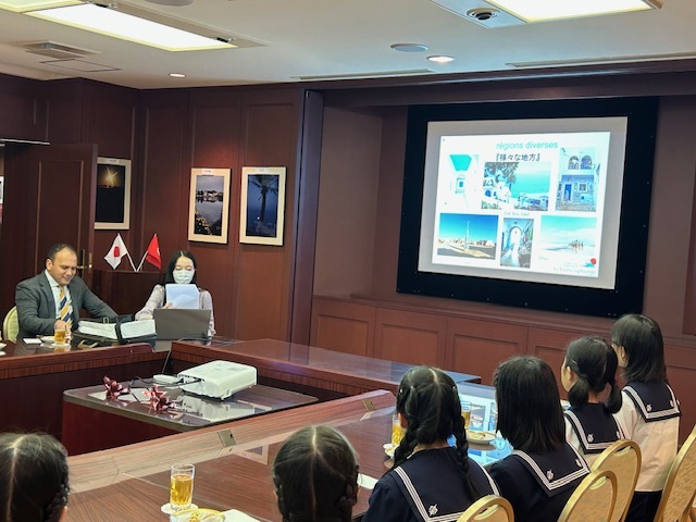 10月8日に白百合学園小学校でフランス語を学ぶ児童が大使館に遊びに来てくれました!小学生の皆さんは、外交官によるフランス語でのチュニジアの説明を熱心に聞いていました。#施設見学 #フランス語 #白百合 pic.x.com/ZK434fQxpY