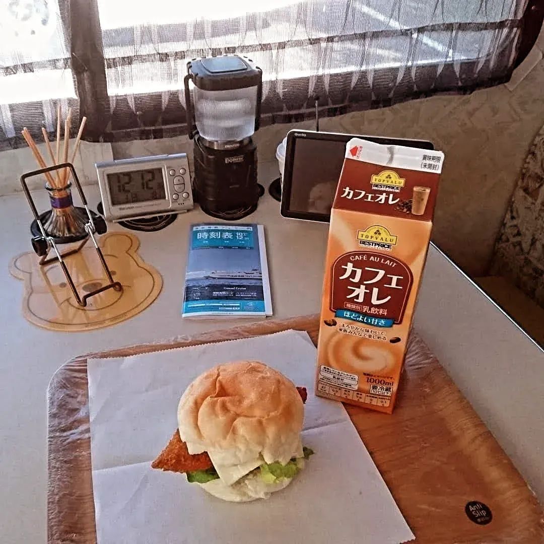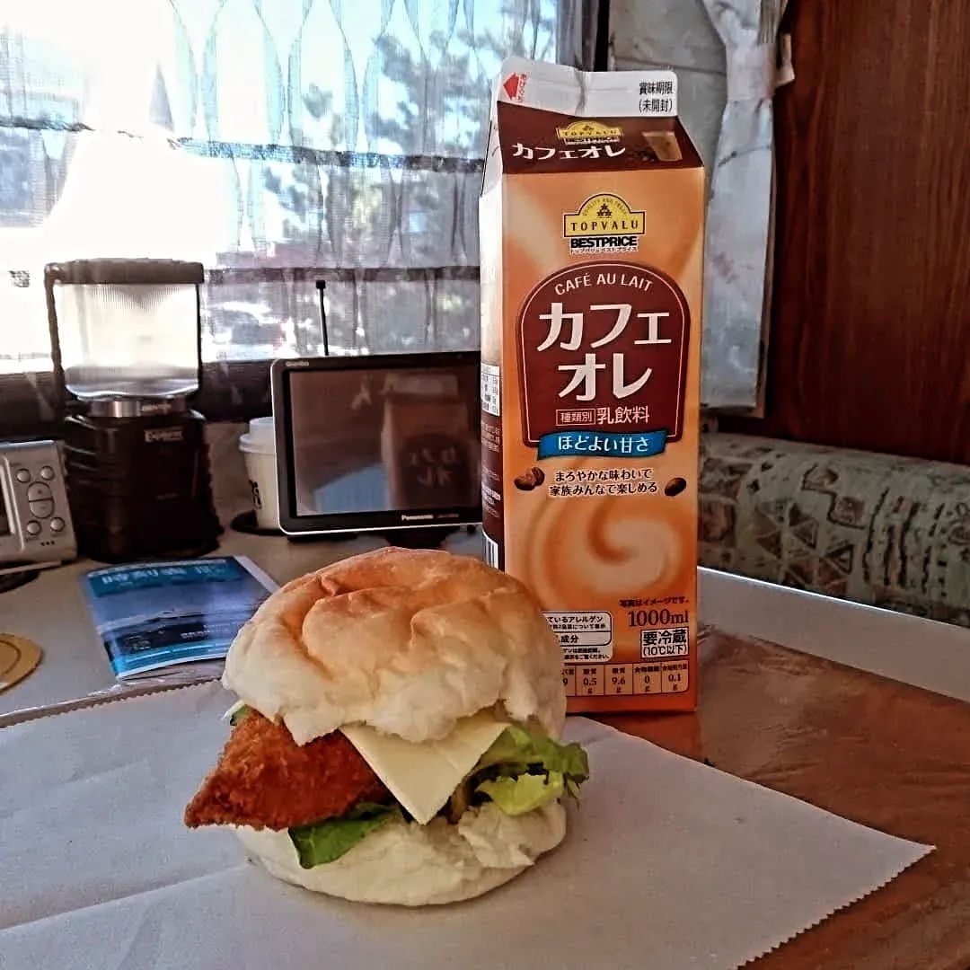 キャンピングカーで食事♡バンズを買ってレタスに白身魚フライにスライスチーズをはさんだ自家製フィシュバーガーとカフェオレ!思い出は色褪せない #キャンピングカー旅 #青森県の旅 #青森県 #旅日記 #フィシュバーガー #カフェオレ #食べたいものを食べる #思い出は色褪せない #心に旅を pic.x.com/4t92LPCk6u