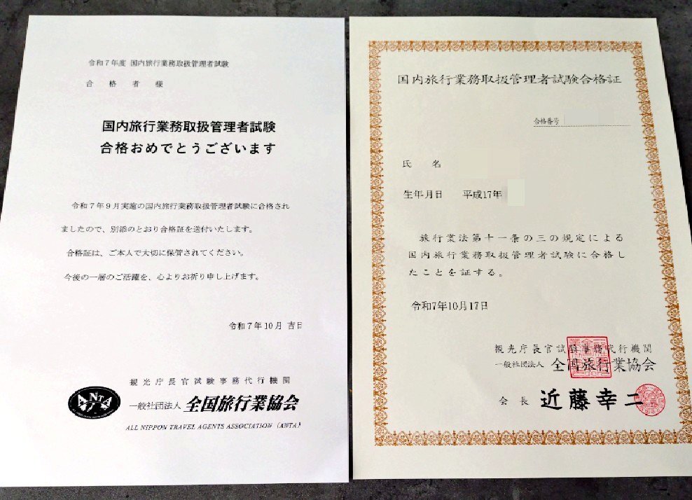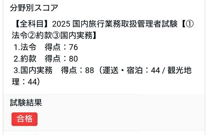 国内旅行業務取扱管理者試験に合格してました! 対策期間は予備論文後、2週間集中。 使った参考書は画像のユーキャン2冊のみ。この2冊で十分対策できました! 来年受験される方、頑張ってください! #国内旅行業務取扱管理者 #旅行業務取扱管理者 #独学 #勉強垢 pic.x.com/IIDSbs02VM