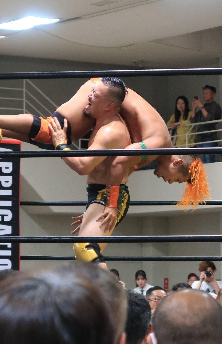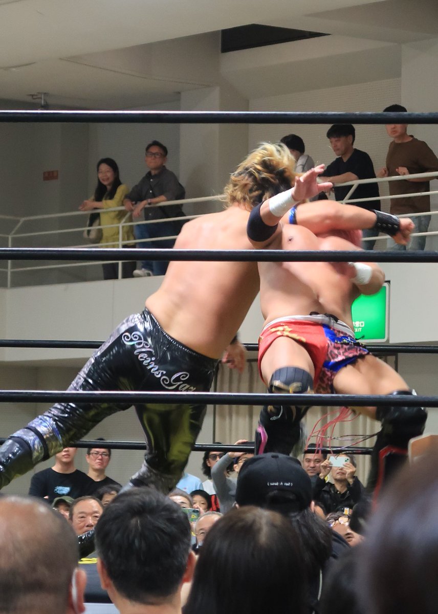 昨日は #石川プロレス#旗揚げ戦 金沢流通会館大会へ⑦ メインイは兼平大介&崔領二 vs 大谷譲二&藤田ミノルのタッグマッチ。 兼平大介の最高のパートナーであり最高のライバルである譲二。 気合い十分!熱い闘いが魅力的。😊 石川プロレスへの愛もしっかり伝わってきて胸が熱くなったなぁ。 pic.x.com/G7X3nhPoBX