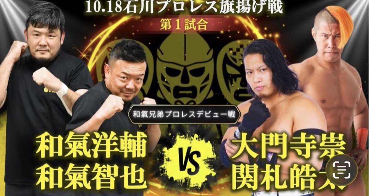 昨日は石川プロレスの旗揚げ戦!金沢流通会館大会に行ってきました。② 和氣兄弟。(和氣洋輔 &和氣智也) 初めて見るふたりなのにSNSでめっちゃチェックしてたので、、凄い有名人にお会い出来た感覚。(笑) デビュー戦の相手は大門寺崇& 関札皓太組。 楽しみ過ぎる! #石川プロレス #旗揚げ戦 pic.x.com/eerUtaoHHc