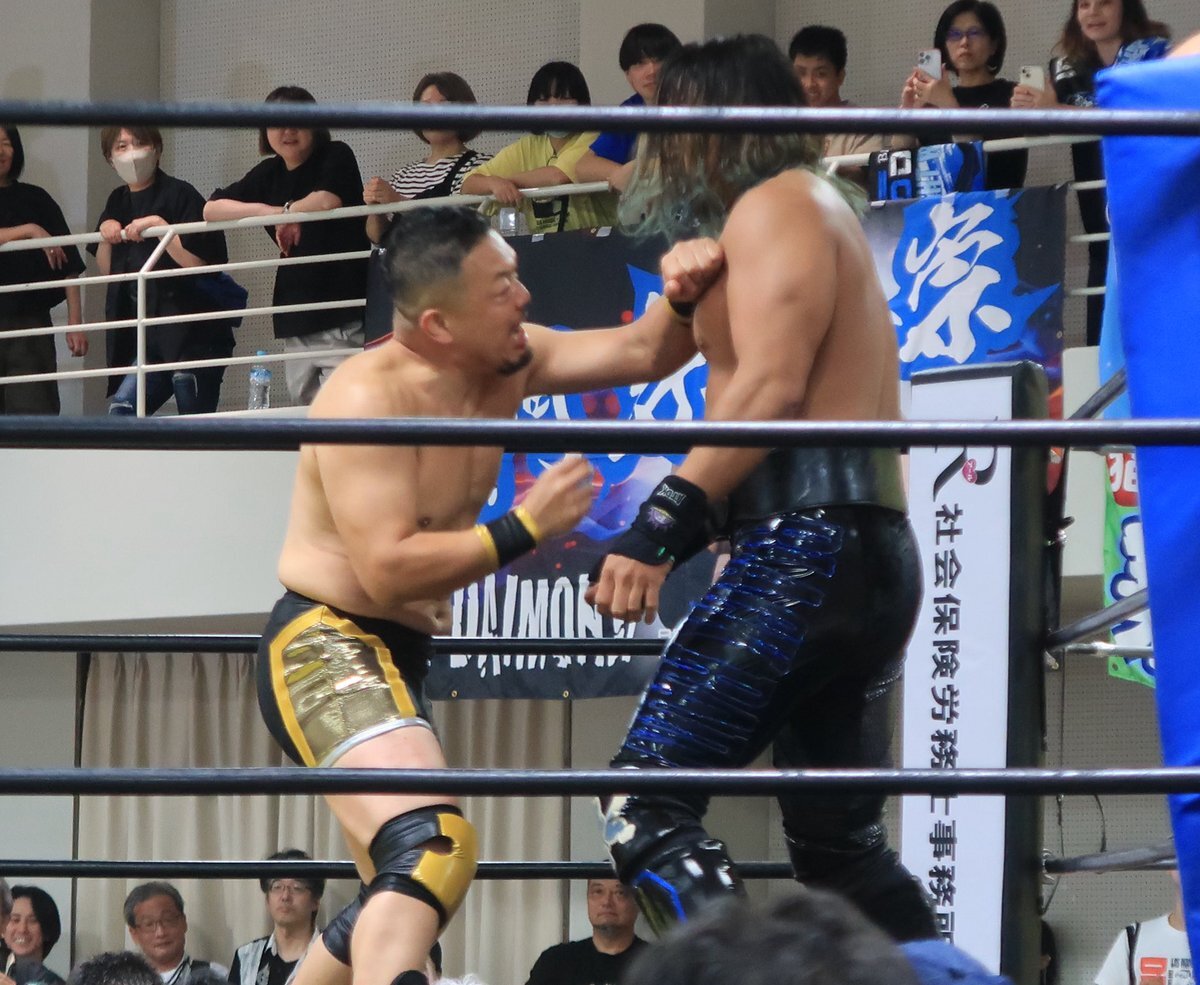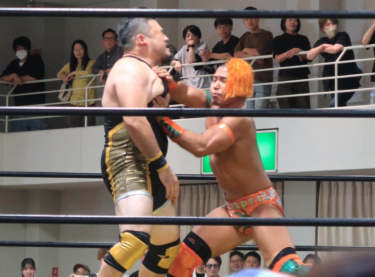 ( ゚д゚) 、ペッしてから、チョップするよ😊 何回もしててワロタ😂👏 #石川プロレス #旗揚げ戦 #藤田ミノル pic.x.com/PfFA8oFmqt