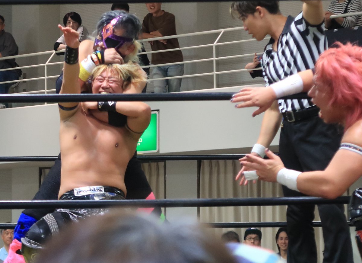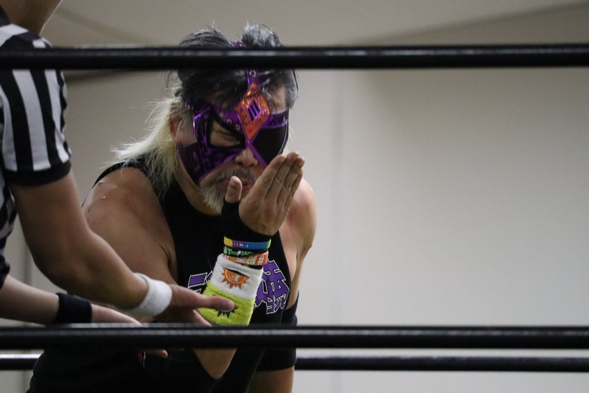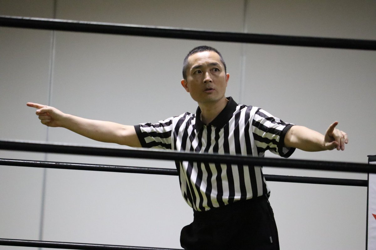 キリッとレフェリング中のKスケ タカハシさん! ダンプ松本さんに竹刀で叩かれてて、気の毒やった🥺 #石川プロレス #Kスケタカハシ #旗揚げ戦 pic.x.com/KH7qZm9Sp2