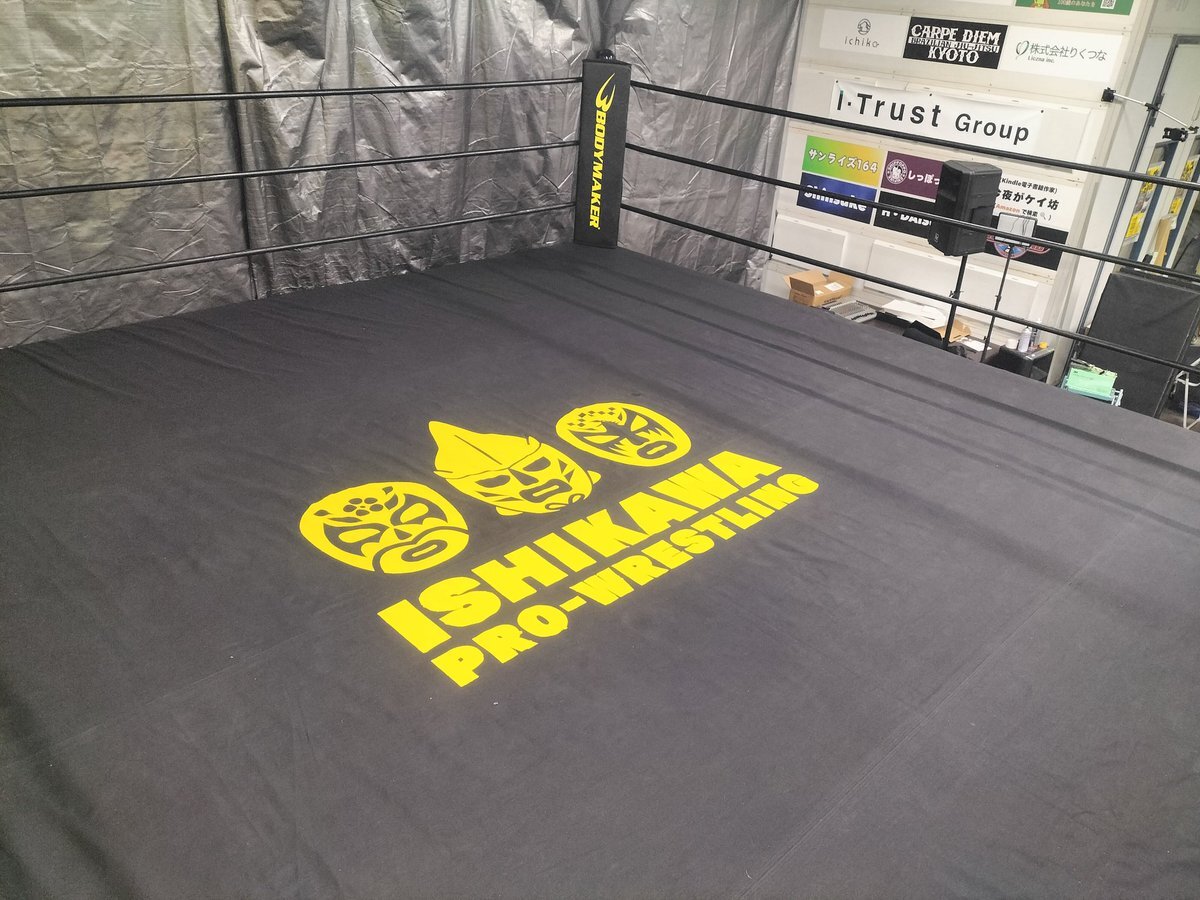 石川プロレス旗揚げ戦まで、泣いても笑っても残り4日!キャンバスにロゴも入って準備オッケ👌 オジサン総出で塗り塗り。時刻は午前1:30でございました💦 この歳になって文化祭前夜みたいな事になるとは。😆 みんなで協力して成功させたいです! #石川プロレス #旗揚げ戦 pic.x.com/GeWnw0WeEP