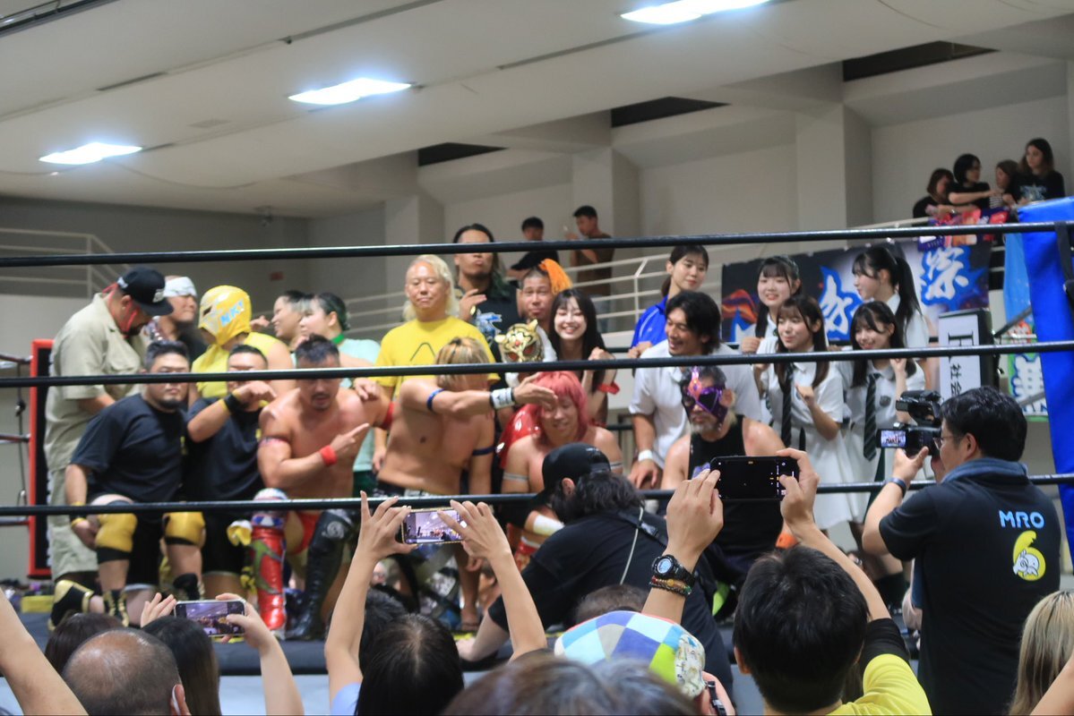 集合写真なんやけど、1番後ろからやからごめんね🙏 素敵な旗揚げ戦でした😊 観れて良かった🫶 #石川プロレス #旗揚げ戦 pic.x.com/SBKTtryR1c