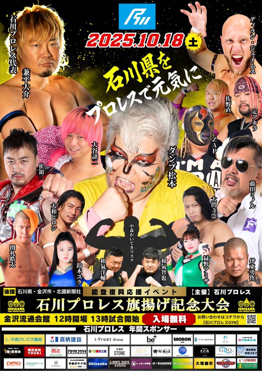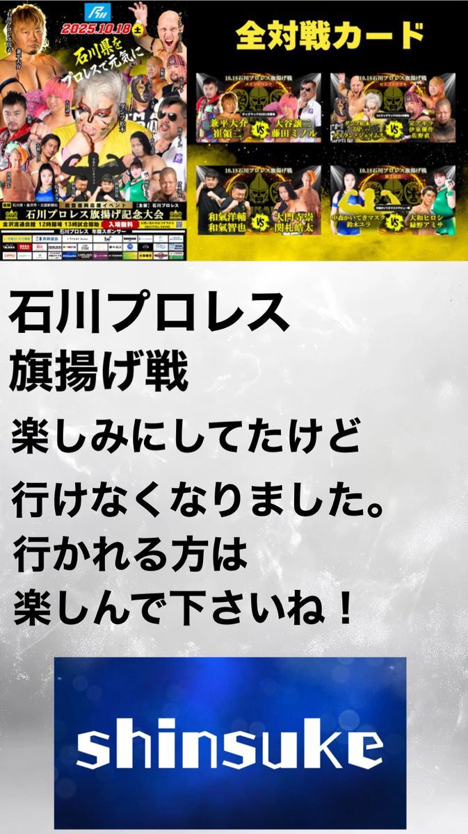 ついに明日2025.10.18 石川県の歴史に新たな1ページが刻まれる… #石川プロレス #旗揚げ戦 #金沢 #プロレスラー pic.x.com/r2FiS5jT63