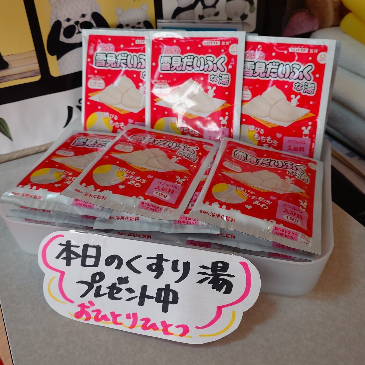 ども❗️#日の本湯 です 今日11月8日は #いい雪見の日 と言う事で #雪見だいふくな湯 やってまっせ〜♨️ そして今日から #雪見だいふく も1個150円にて販売開始してますよ 数量限定で入浴剤のプレゼントも‼️ #親子ふれあいデイ も実施してるので、ご来湯お待ちしております🙇‍♂️ #銭湯 #サウナ #守口市 pic.x.com/b86h90VcjL