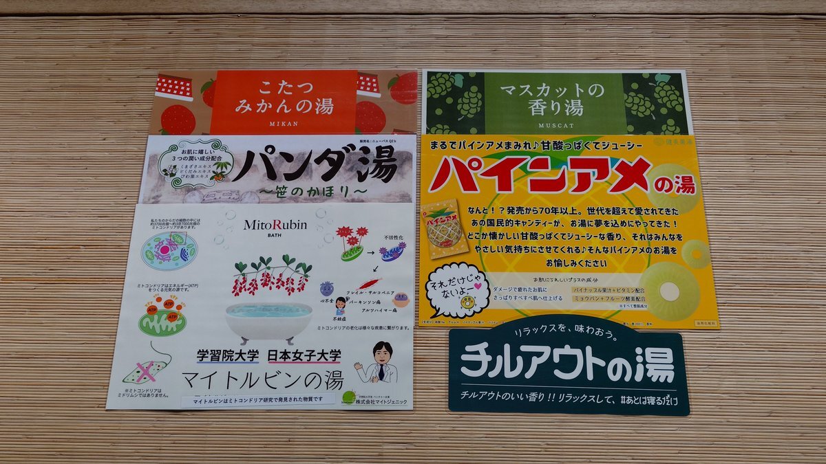 ども❗️#日の本湯 です 今週の薬湯のラインナップはこちら‼️ 月曜日 #マスカット 火曜日 #パインアメ 水曜日 #チルアウト 木曜日 #みかん 土曜日 #パンダ 日曜日 #マイトルビン 今週末 #マイトルビンの湯 を実施するのでお楽しみに‼️ ご来湯お待ちしております🙇‍♂️ #銭湯 #サウナ #入浴剤 pic.x.com/PAfl2eIzjv