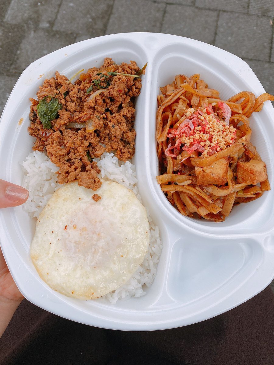 #日タイカルチャーフェア 2日目🇯🇵🇹🇭 雨が降っていたので客席やステージをスタッフさんが丁寧に準備していました🙏今日もどんより雲でポツポツ降るけど多分大丈夫そう☁️ クンテープさん今日も美味しそう😋 まなてぃ2日めも頑張って✨️ #岡村茉奈 #タイフェス #クンテープ pic.x.com/IPypkdXyjD