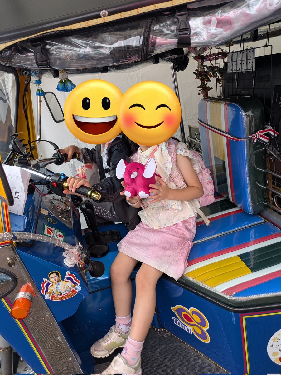 #日タイカルチャーフェア 行ってきたよ!withお向かいのおばちゃんズwww タイのお土産で貰ったワンピースで現地入り、無料貸出(!)のタイ子ども服にお着替えしてルンルンの娘。息子は嫌らしく断念。でもトゥクトゥクには乗る! 娘が抱っこしてるのは万博🇹🇭パビリオンで買った人形のช้างน่อยちゃん🐘 pic.x.com/d0jm4LJa3Z