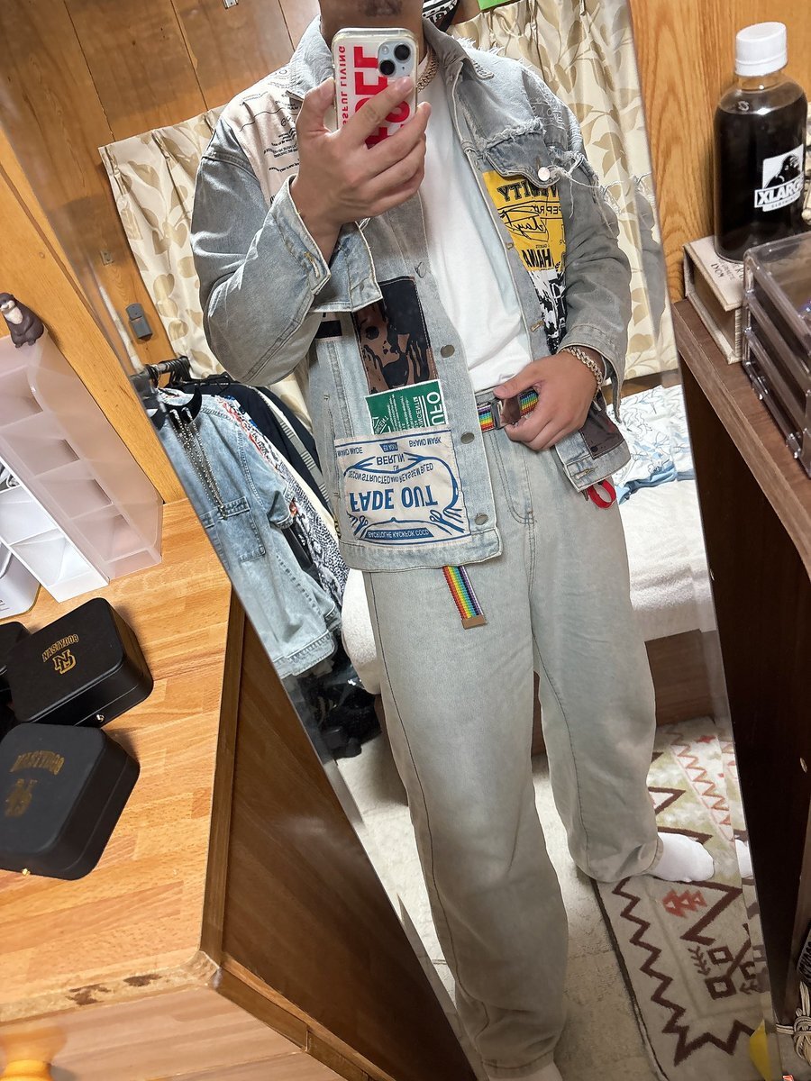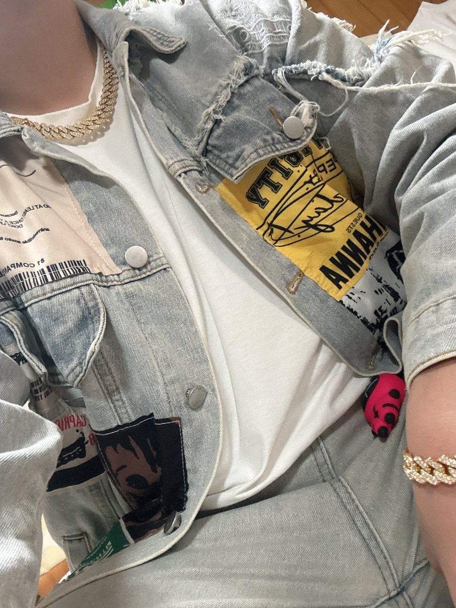 今日のコーデは デニム×デニム jacket:Ruhm t-shirt:Discoat belt:セカスト pants:Ruhm necklace:NASTYDOG bracelet:NASTYDOG shoes:CONVERSE #日常垢 #日常垢さんと繫がりたい #日常垢と繋がりたい #服好きさんと繋がりたい #おしゃれさんと繋がりたい pic.x.com/3oiRdyhUk7