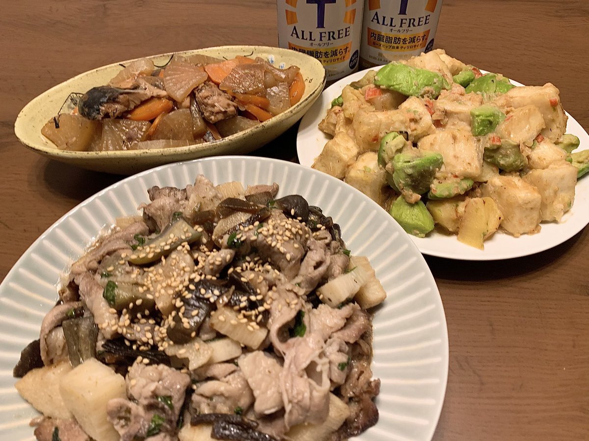 息子咳してるから薬貰ってきた( ¨̮ )🥕🧡 ■ 豚肉 長芋 茄子のしそぽん炒め ■ 豆腐 アボカドの鮭味噌炒め ■ 鯖 大根 人参の煮物 #おうちごはん #X家庭料理部 #お腹ペコリン部 #料理記録 #アルモンデ #晩ごはん #献立 #自炊記録 #日常垢と繋がりたい #自炊 #料理好きな人と繋がりたい pic.x.com/UcbgdJZcbZ