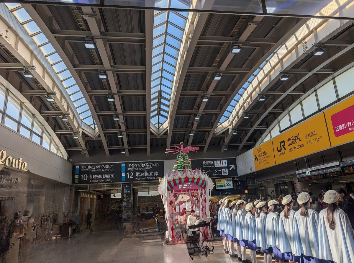 日暮里駅内で クリスマスミニコンサート!! 差し込む日の光が白い衣装に反射して 歌声とともに神々しかった!! #日暮里駅 #非日常 #光との相性 #陽光 #得した気分 pic.x.com/BOnc1qfYhO
