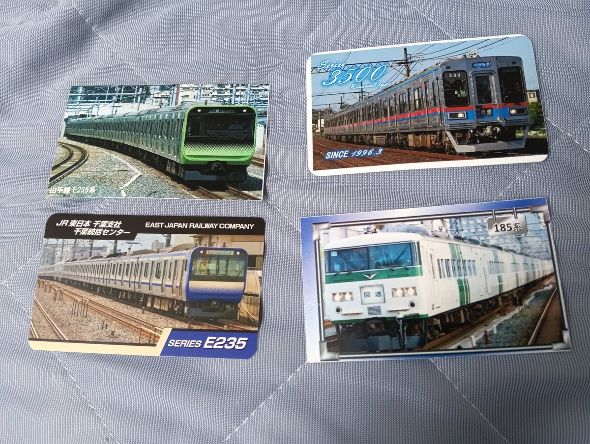 昨日の収穫 ヤテ→駒込 京成→日暮里 スカ→四街道 185→松戸 駅員さんありがとうございました! #電車カード #JR東日本 #京成電鉄 #E235系 #185系 #京成3500形 #駒込駅 #日暮里駅 #四街道駅 #松戸駅 pic.x.com/1bW7eNcSjb