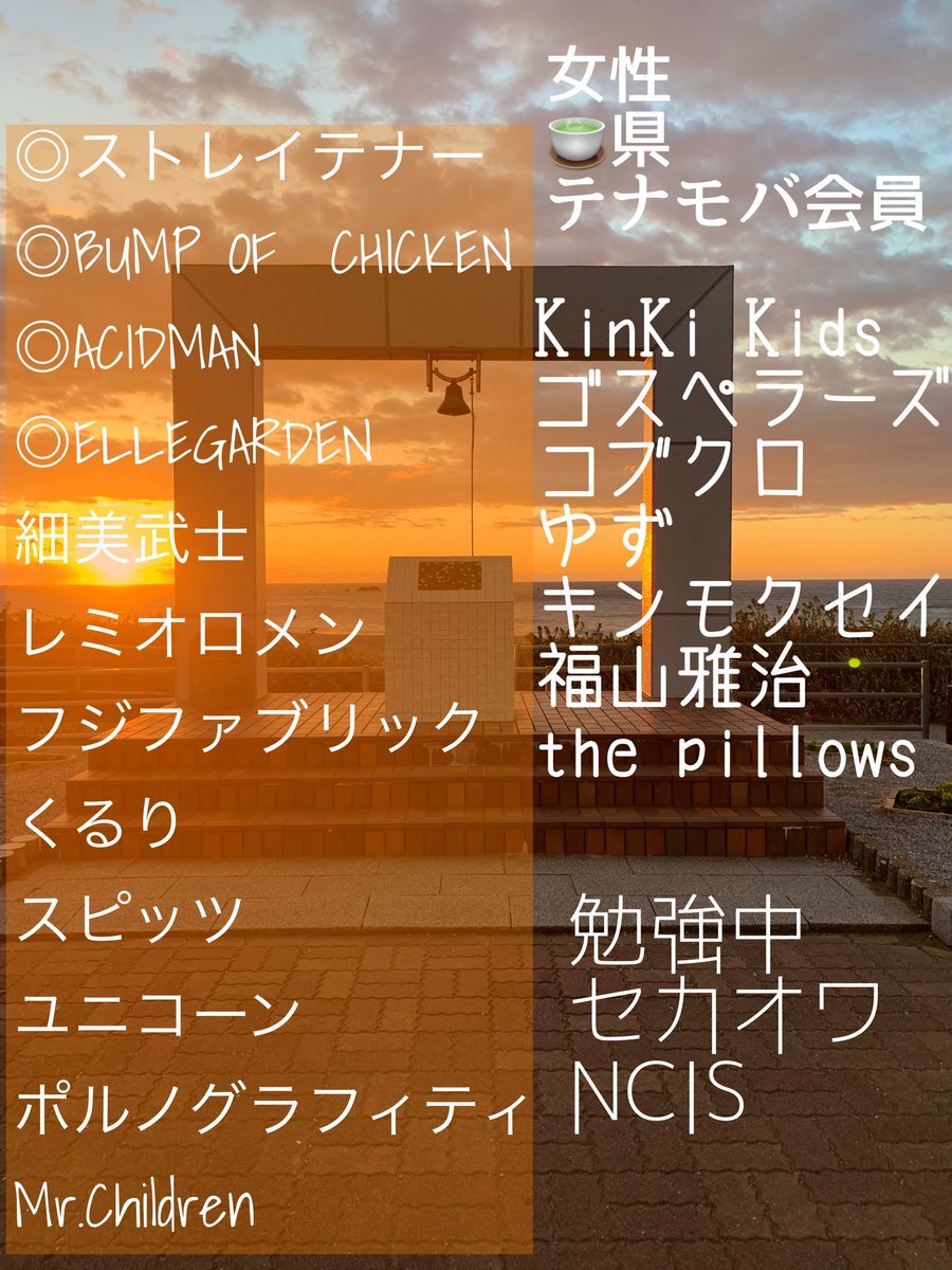ストレイテナー BUMP OF CHICKEN ACIDMAN ELLEGARDEN Official髭男dism Mrs. GREEN APPLE SEKAI NO OWARI Vaundy レミオロメン YOASOBI #日曜日だし邦ロック好きな人と繋がりたい #日曜日だし邦ロック好きなフォロワーさんが増えることを願う #日曜日だし邦ロック好きな人がRTしてくれることを願う pic.x.com/Yl0w7g1FwF