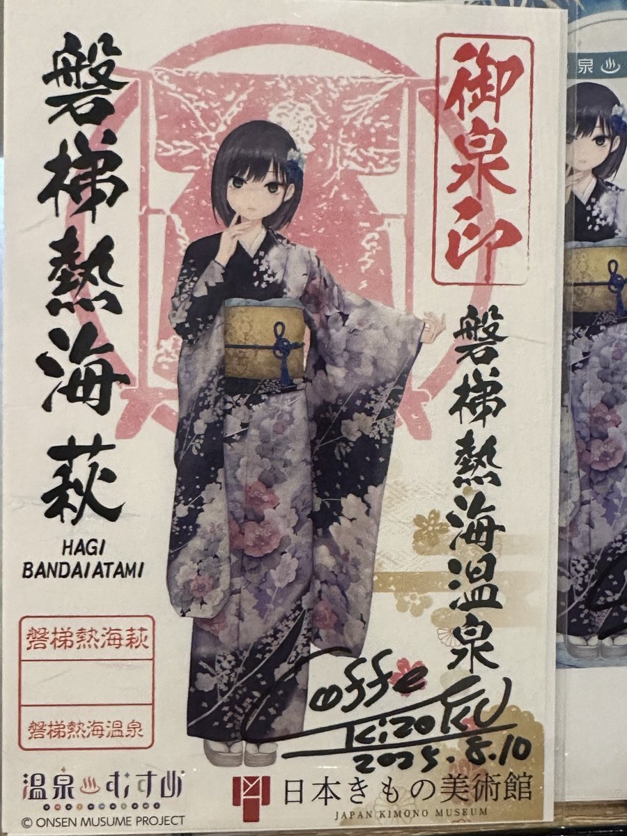 疲れましたので。課金して特急で帰ります。 今日のまとめ 深山荘をチェックアウトして、日本きもの美術館の萩さんに会いに行って来ました。 このパネルに関しては、美しいという言葉がぴったり🥰 #日本きもの美術館 #磐梯熱海萩 pic.x.com/UccEmENEte