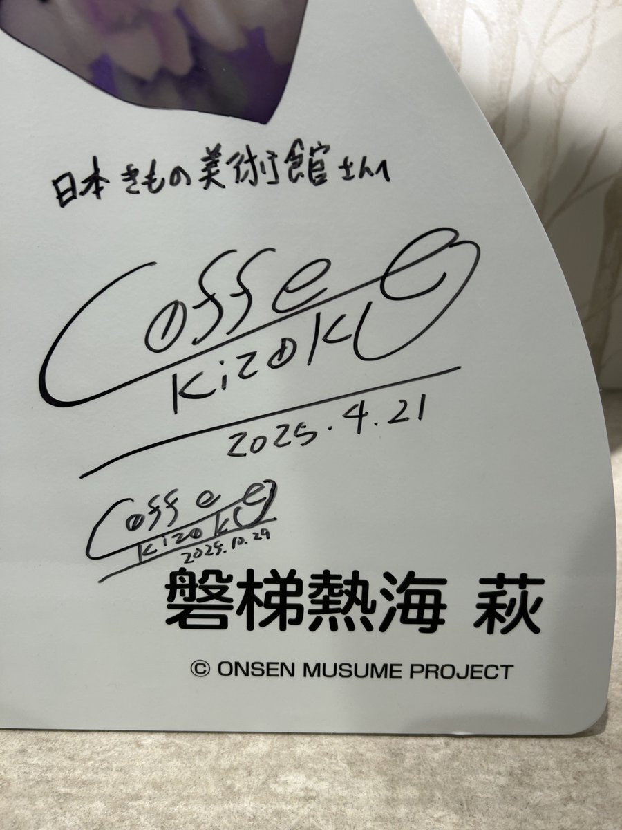 冬が本格的になる前で、 🏍の旅割が使える内に磐梯熱海温泉の萩ちゃんに会いに♨️ 10月頭に来たばかりだがこう、じっくり見ると着物の美しさも然る事乍ら、それを落とし込んで萩ちゃんに着せる先生も凄すぎる。 傍らに先生の作品が飾ってあるのもミソですね #日本きもの美術館 #磐梯熱海萩 #珈琲貴族 pic.x.com/TvrIsNZgQt