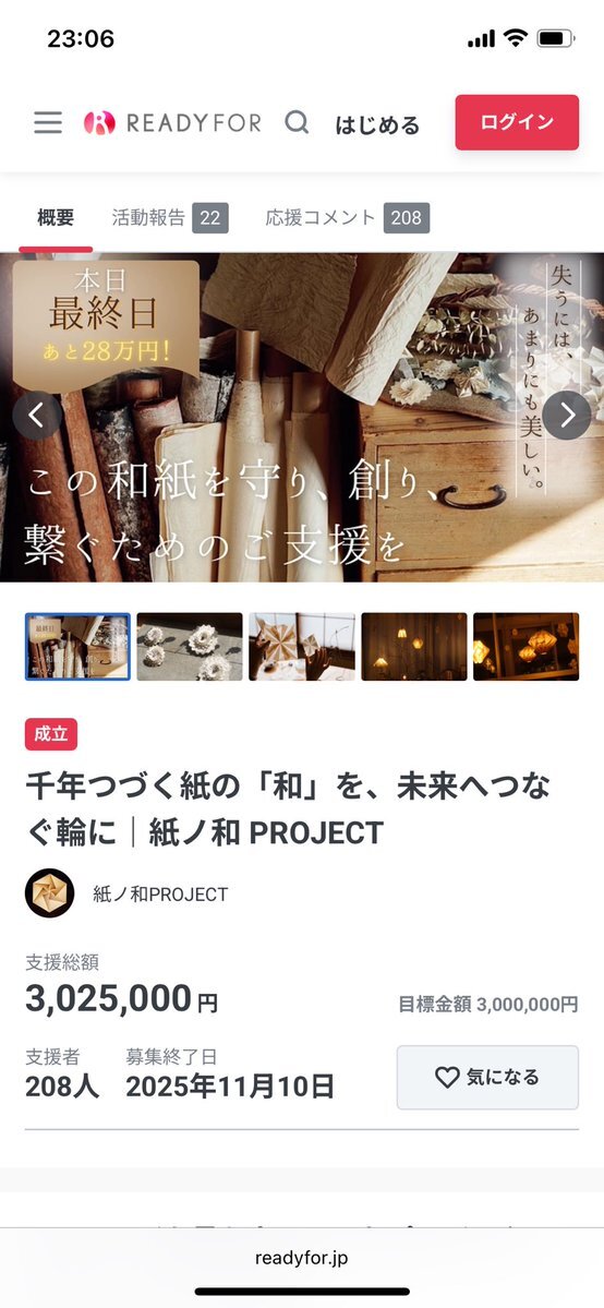 皆さまご支援ありがとうございました! おかげさまで無事に目標クリアできました。 ここからは和紙を守るプロジェクトを本格的に進めていきます。たくさんの方々のご厚意に感謝します。あらためてありがとうございました! #和紙 #日本の伝統文化を守りたい #日本の伝統 pic.x.com/RXHDrFc92C