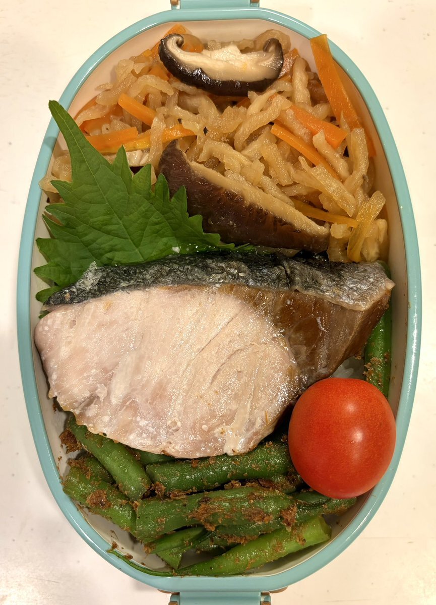 四毒抜きの主人弁当 #四毒抜き #日本はまだ間に合う ブリ塩焼き 切干大根煮物 インゲンおかか pic.x.com/gk5kg261Xc