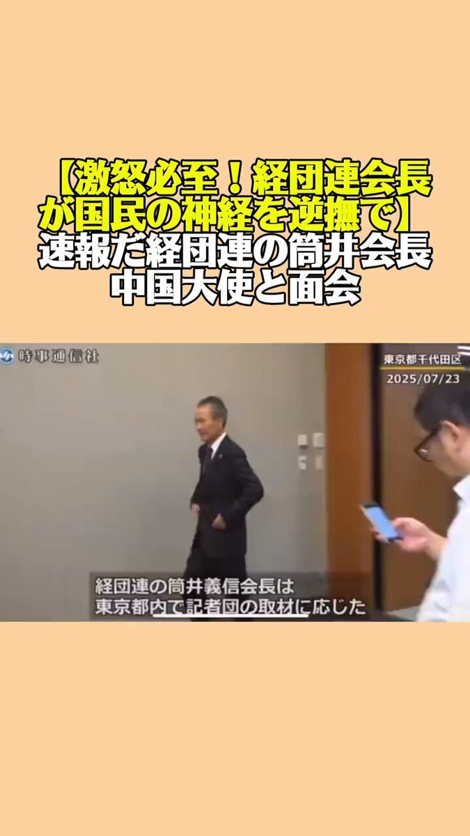 【邀怒必至!経団連会長が国民の神経を逆撫で】速報だ経団連の筒井会長中国大使と面会