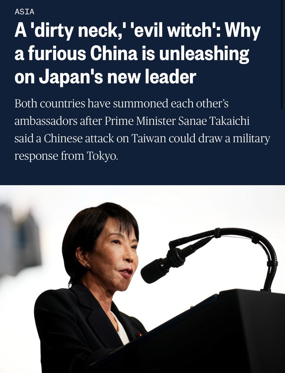 Sanae Takaichi is one of the most dangerous women in the world She just threatened China with war over Taiwan, breaking the taboo that even the most far right Japanese Prime Ministers before wouldn’t touch She is obsessed with plunging the world into war