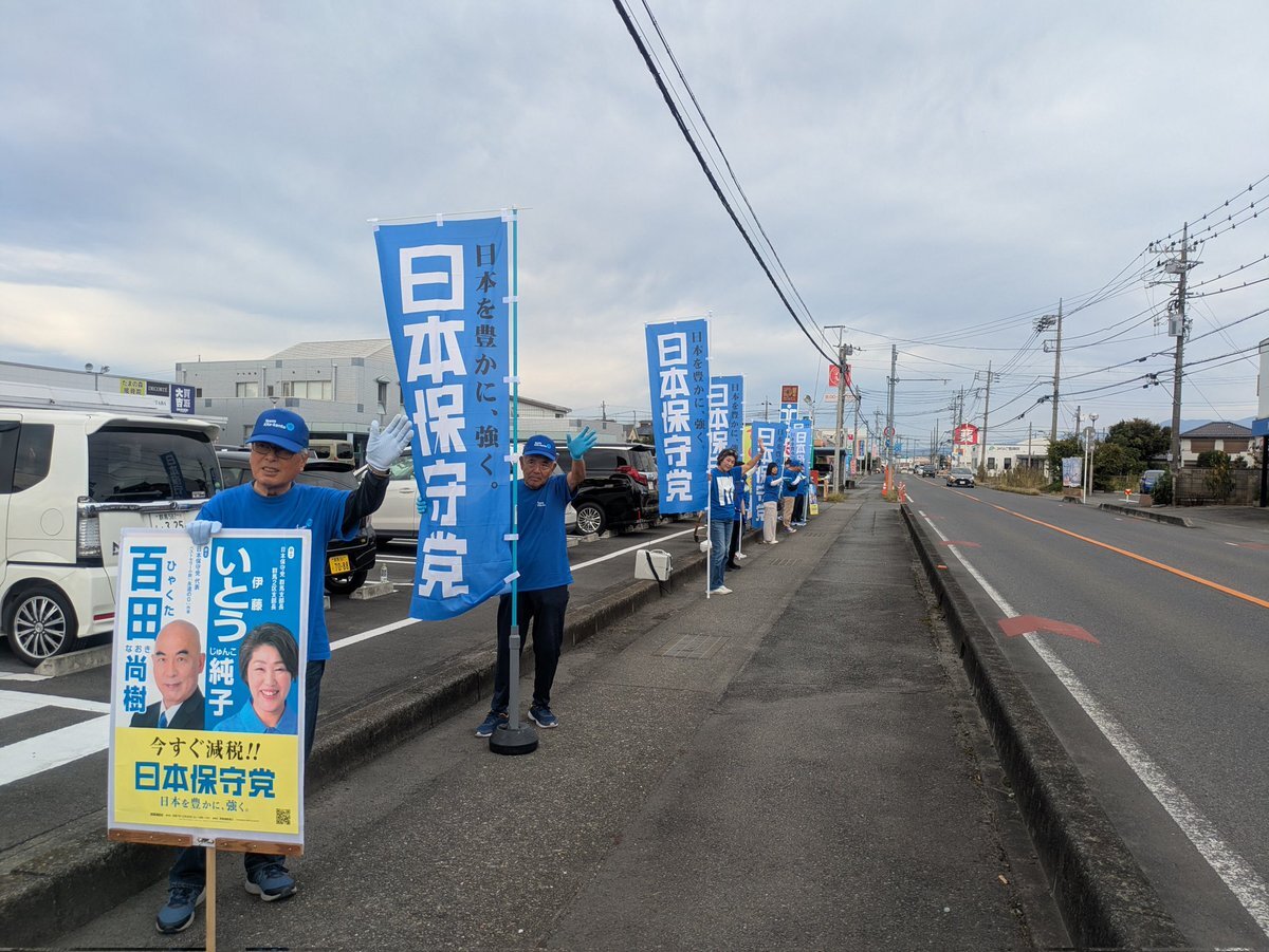 結党から丸2年が経った「日本保守党」。 福岡支部を支えるボランティアさんの勇姿を、ぜひご覧ください!!386号線にて実施!!(通称:旗見せ😆) #日本保守党 #百田尚樹 #有本香 #北村晴男 #森けんたろう #日本を豊かに強く明るく楽しく pic.x.com/KYC3S9OiZy