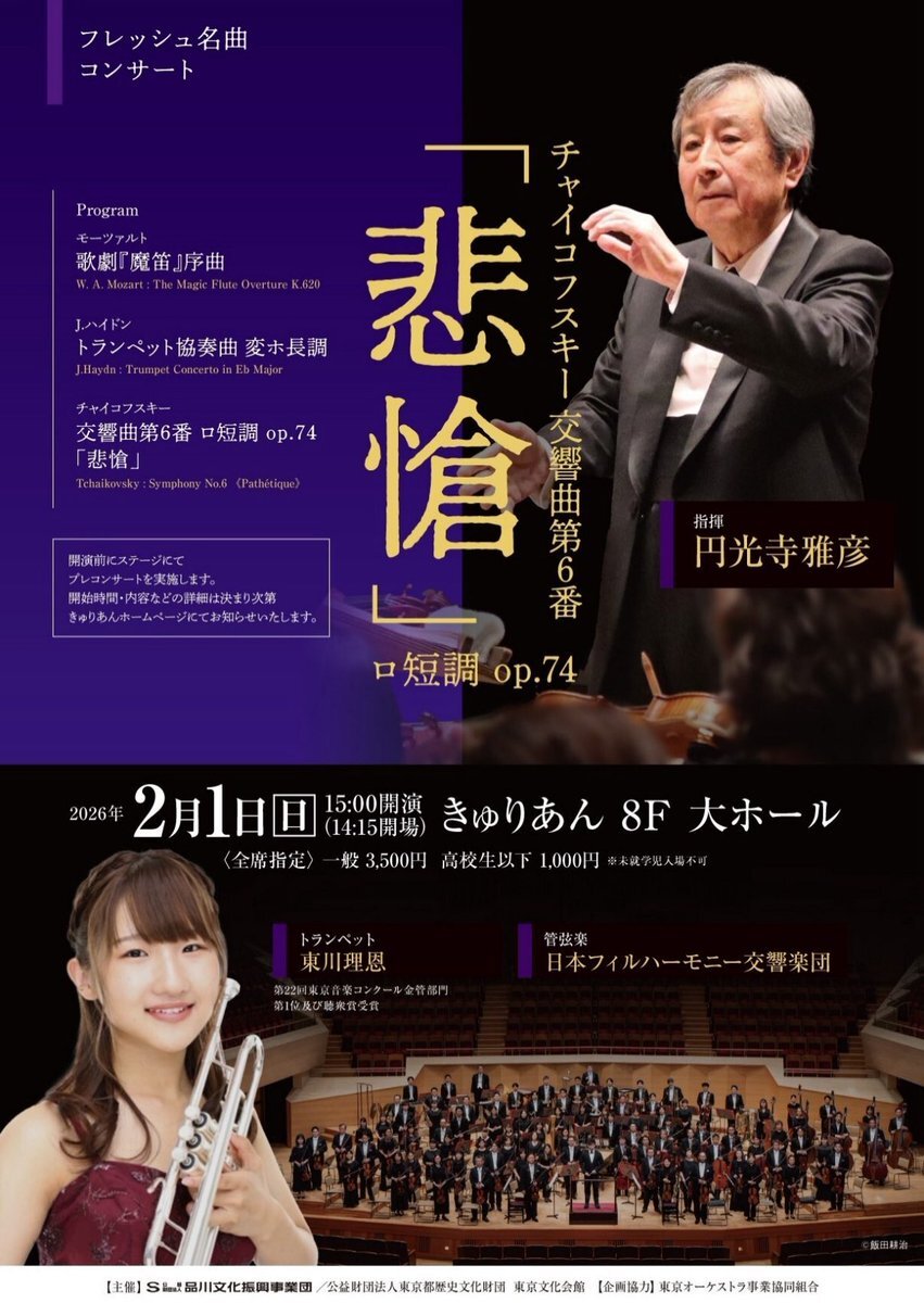 2026年2月1日に品川きゅりあんにて、ハイドンのトランペット協奏曲を演奏します。 ありがたいことに日フィルの皆さまとは2度目の共演となります。 こちらはチケット発売中です。皆さまのご予約お待ちしております✨ t-bunka.jp/stage/29965/