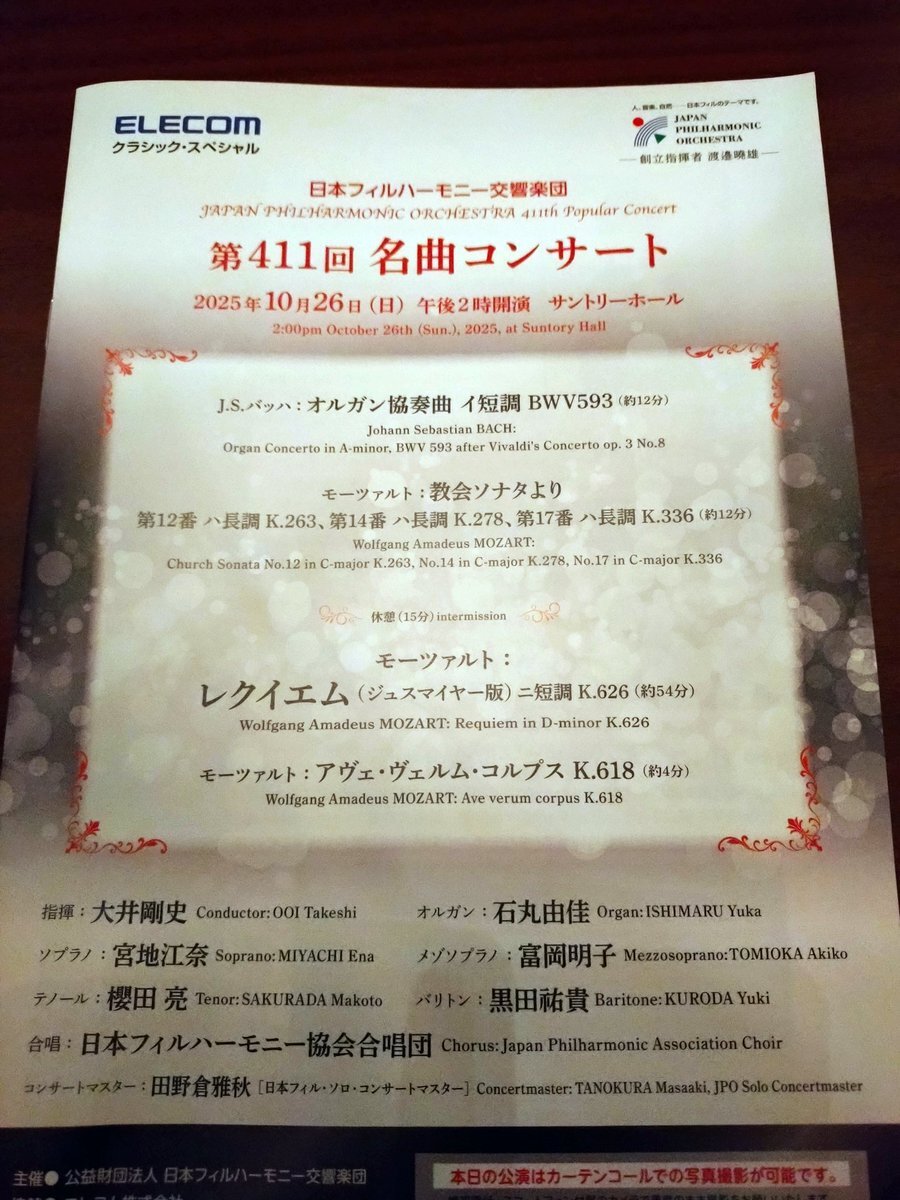 日本フィルハーモニー交響楽団のコンサートに行ってきました お目当てはモーツァルトのレクイエムです 私はこの曲が好きで色々な演奏家のCDを30枚ほど持っていますがやはり生演奏は良いですね #日本フィルハーモニー交響楽団 #モーツァルト #レクイエム pic.x.com/OtkUmsNAZJ