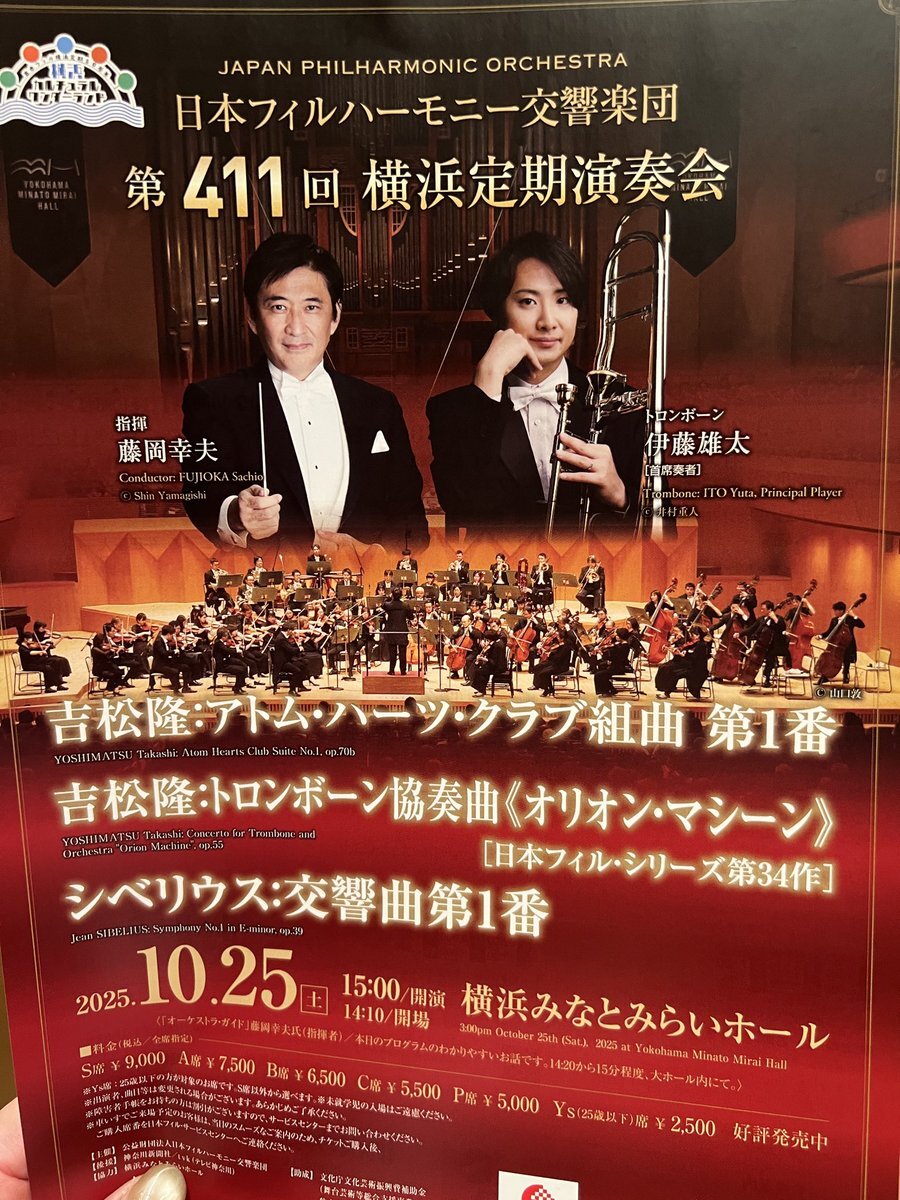 横浜定期デビュー 先月は出張と重なって諦めた😭 まさかのご本人がいらっしゃった! ほとんど聴いたことがなかったけど、吉松さんの曲ってカッコいい✨ これぞ「現代音楽」って感じがする。 #日本フィルハーモニー交響楽団 #藤岡幸夫 #吉松隆 pic.x.com/c8ZoW0REDQ