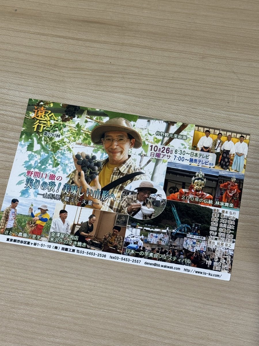 📺11月16日(日)午後2時30分 「#遠くへ行きたい 」 #野間口徹 さんが山形へ✈️ 🚡ロープウェイで蔵王・御釜を目指す 🍇大好きなシャインマスカットに感激 👺1200年の伝統ある華麗なる舞楽に魅了 🥢米沢牛をすき焼きで堪能 🍲日本一の芋煮会に参戦 #山形 #山形県 #ybc