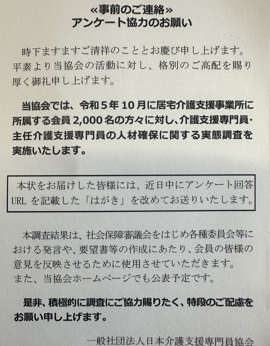 日本介護支援専門員協会からアンケートのお願いありました。 更新研修は不要だと思いますか? と言う質問があれば嬉しいですね。 なければ疑問があります。 #更新研修廃止 #日本介護支援専門員協会 pic.x.com/eLgz9SEYMT