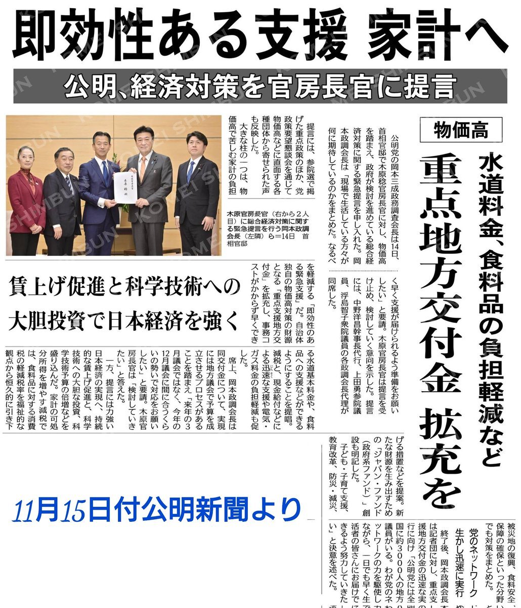 物価高騰対策として、公明党が官房長官に「即効性ある支援」を提言。 水道料金・食料品負担の軽減、地方交付金の拡充など、生活を守るための具体策が示されました。 生活者目線の政策を、これからも全力で。 #公明党 #日本再生へ #政策勝負 pic.x.com/uFd1uk8FSj